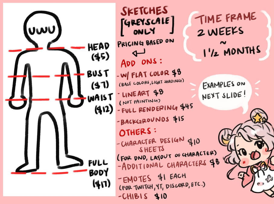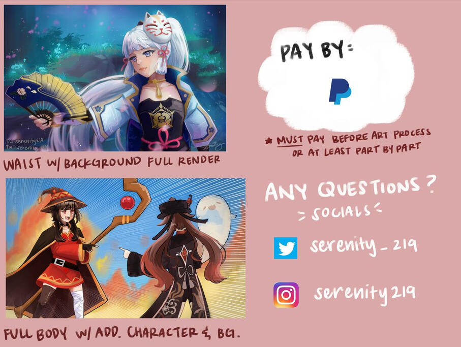 Required to at least pay half or full payment for your commission to secure your slot.